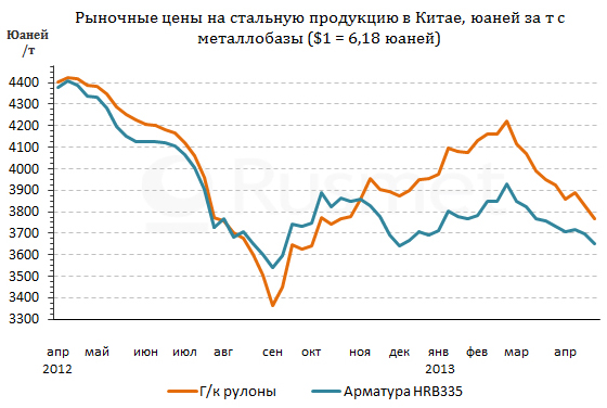 По оценкам специалистов национальной металлургической ассоциации CISA, снижение цен на стальную продукцию в стране объясняется тремя группами факторов. Во-первых, это недостаточный спрос. Апрель традиционно считается временем сезонного подъема на национальном рынке стали, но в текущем году ничего подобного не происходит. Темпы роста ВВП Китая понизились в первом квартале 2013 года до 7,7% против 7,9% в четвертом квартале прошлого года. И хотя для любой другой страны это был бы превосходный результат, для китайской экономики это равносильно признанию растущих трудностей.