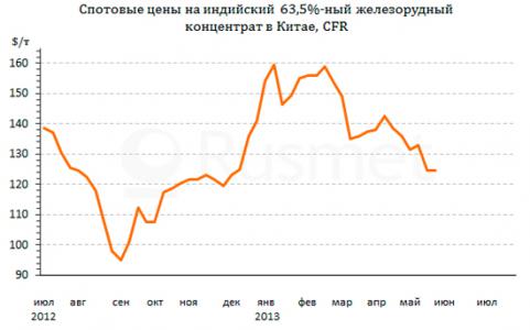 /Rusmet.ru, Виктор Тарнавский/ После резкого падения в середине мая цены на спотовом рынке железной руды достигли относительной стабильности. По крайней мере, в течение последних двух недель котировки на 63,5%-ный индийский концентрат не выходили за пределы интервала $124-127 за т CFR. По мнению многих специалистов, цены на руду сохранят это постоянство и в ближайшие несколько недель. Их падение до менее $120 за т CFR в обозримом будущем, по мнению аналитиков ведущих железорудных компаний, маловероятно, но и даже наиболее оптимистичные прогнозы предусматривают рост не более чем до $130-133 за т FOB.