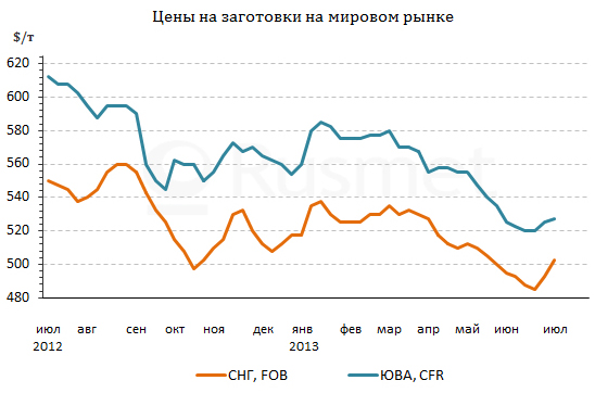 По мнению аналитиков, в июле цены на заготовки в странах Восточной Азии будут относительно стабильными. Поставщики будут, по возможности, стараться повысить котировки, но пока в регионе продолжается сезон дождей, они вряд ли добьются чего-то существенного.