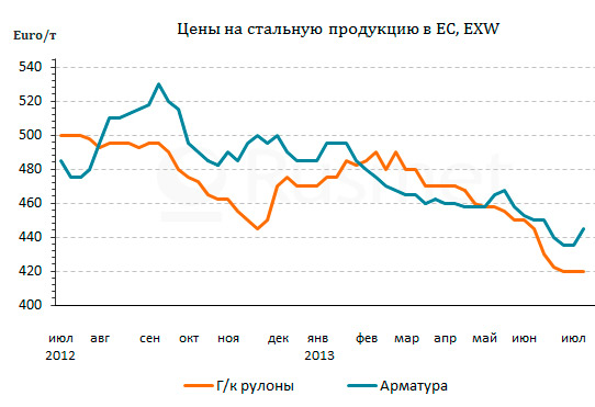 /Rusmet.ru, Виктор Тарнавский/ После того как цены на стальную продукцию в странах Евросоюза опустились в конце июня до самого низкого уровня более чем за три года, европейские металлурги смогли приостановить спад и добиться желанной стабилизации. Судя по всему, производители просто дошли до предела отступления, за которым начинался неконтролируемый рост убытков. Как ни странно, положительную роль сыграло и наступление летнего спада деловой активности. В условиях низкого спроса поставщики начали ограничивать объем предложения и прекратили идти на новые уступки покупателям.