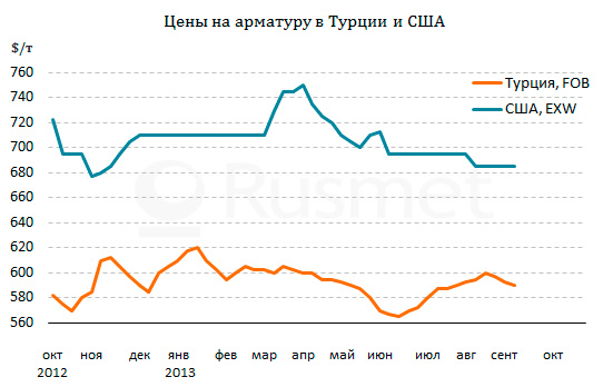 Одной из оставшихся «лазеек» для доступа на американский рынок стали были поставки арматуры из Турции, но теперь и она, скорее всего, закроется. Группа американских производителей данной продукции во главе с Nucor и Gerdau Ameristeel 4 сентября подали иск в Комиссию по международной торговле, обвиняя экспортеров из Турции и Мексики в демпинге. Как заявляют истцы, демпинговая разница составляет 41-42% в случае Турции и около 50% в Мексике. Комиссия должна вынести вердикт о нанесении ущерба местным производителям уже в октябре текущего года, а установление предварительных пошлин ожидается в апреле 2014 года. Расследование обещает стать самым крупным антидемпинговым процессом в мировой металлургической отрасли, как минимум, с 2010 года, когда США ввели тотальный запрет на импорт большей части сортамента китайских труб.