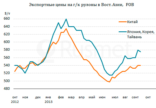 Также можно сказать, что рекордные объемы китайского экспорта в августе стали возможными благодаря сокращению поставок из Японии, Кореи и Тайваня. Местные компании в последние недели ориентируются, в основном, на внутренние рынки, где спрос действительно идет на подъем. Ведущие корейские и тайванские компании уже объявили о повышении котировок на плоский прокат для национальных потребителей на $15-45 за т.