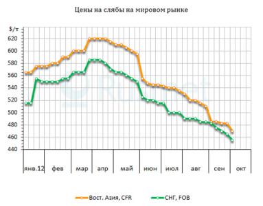 Бразильские компании, ранее предлагавшие полуфабрикаты азиатским клиентам по $520 за т CFR, в октябре согласились на понижение на $40 за т, до $480 за т CFR или около $440 за т FOB. Российские производители уменьшили цены на свою продукцию также до около $480 за т CFR при поставке через дальневосточные порты. Наконец, на этот уровень или же чуть выше опустили котировки крупные японские и корейские корпорации, вынужденные пойти на тот шаг даже несмотря на недавнее подорожание железной руды.