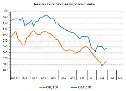 Котировки на заготовки на Ближнем Востоке достигли минимума в середине октября, когда Белорусский метзавод отправил на продажу ноябрьскую продукцию по $490-500 за т FOB (правда, по предоплате). Но в дальнейшем российские и украинские компании смогли получить более выгодные контракты. Перед Курбан-Байрамом (24-28 октября) сделки заключались из расчета $500-505 за т FOB, а новые предложения, судя по всему, начнут поступать не менее чем по $510 за т FOB.