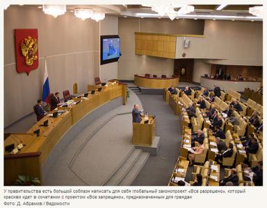 У правительства есть соблазн написать для себя глобальный законопроект «Все разрешено», который красиво идет в сочетании с проектом «Все запрещено» для народа