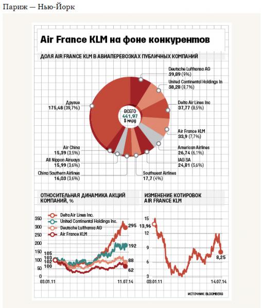 — Прежде всего, мировая экономика, как можно видеть, постепенно выходит из кризиса. Медленно, даже слишком, но все-таки выходит. Все самое тяжелое произошло между 2008 и 2012 гг., а потом началось восстановление, которое и продолжается сейчас. Зона евро выкарабкивается потихоньку и за два-три года в лучшем случае должна выбраться. Это первое. Второе: в авиационной отрасли всегда есть риски, связанные с политикой, АЭС, с конфигурацией рейсов и т. п. Те же события в Нью-Йорке запустили колебания на рынке нефти. Но это риски для всех, не только для нас. В общем, авиационная отрасль остается нестабильной и всегда может столкнуться с неожиданными последствиями, каких раньше не было. Но мы к этому привыкли. В финансовом плане и в плане качества наших услуг Air France KLM в состоянии выдержать определенный шок. Конечно, речь не идет о катастрофах.