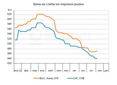 Аналогичная ситуация складывалась и в странах Восточной Азии. Тайванские компании ограничивали уровень своих заказов отметкой в $470 за т CFR. В то же время, бразильские и российские производители не отступали ниже $485 за т CFR, а корейская и японская продукция котировалась не менее чем по $500 за т CFR. В первой половине октября некоторые российские компании были готовы заключать сделки по $465-470 за т CFR, но в ноябре таких желающих уже не было. Производители сократили объем поставок товарных слябов на текущий месяц.