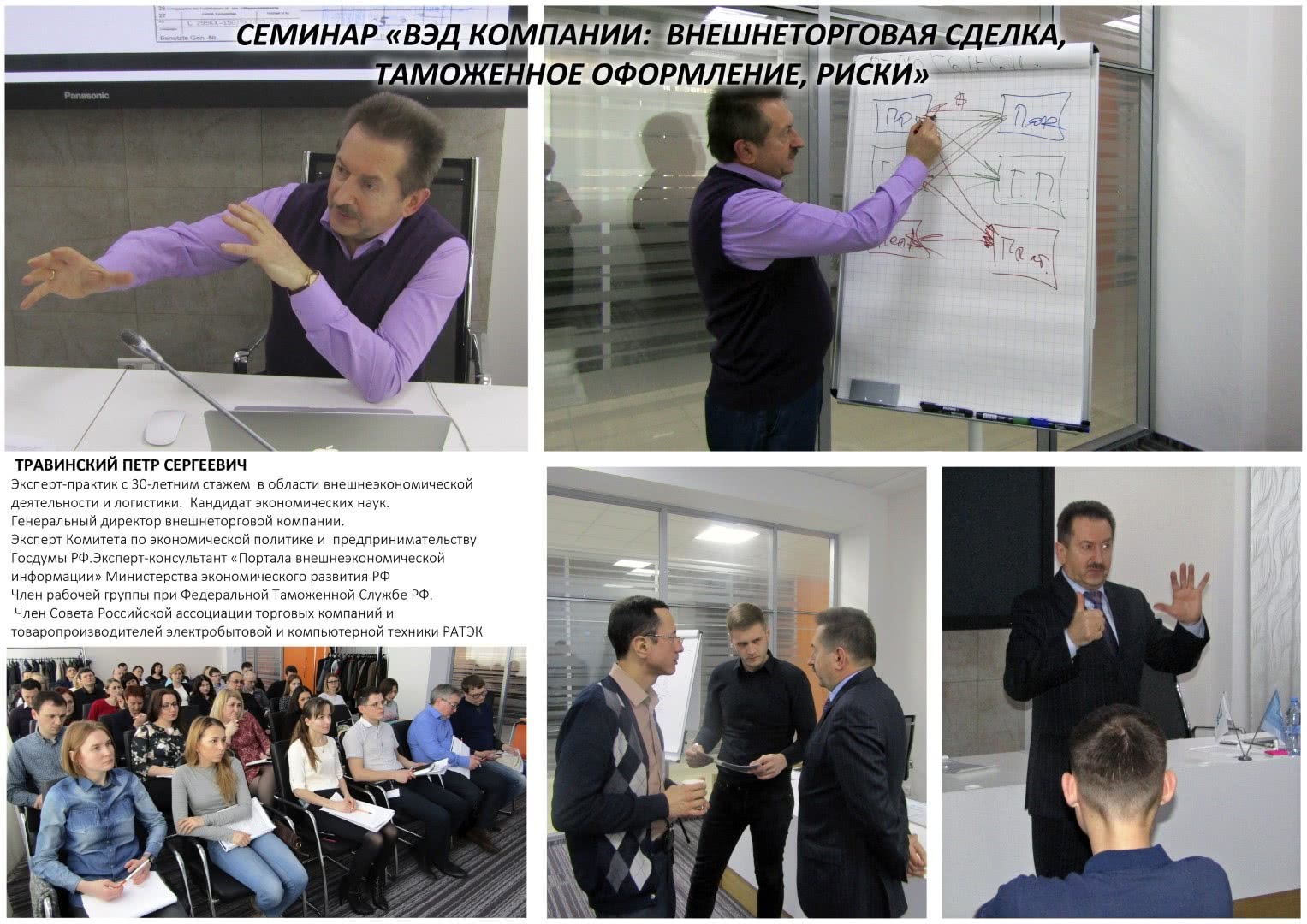 Состоялся открытый семинар «ВЭД компании». Провел данное мероприятие эксперт по ВЭД с 33-летним стажем, бизнес-тренер из г. Москва, Петр Сергеевич Травинский. Семинар представлял из себя практикум из важнейших вопросов по заключению внешнеторгового контра