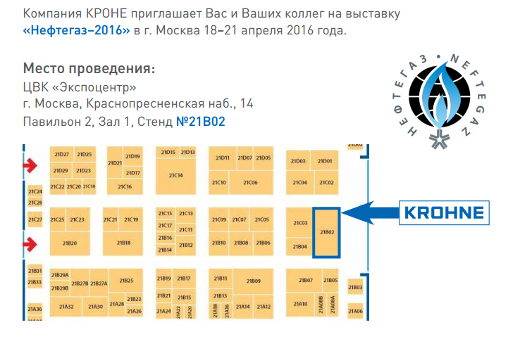 Приглашаем Вас посетить стенд компании КРОНЕ на 16-ой международной выставке «НЕФТЕГАЗ-2016».