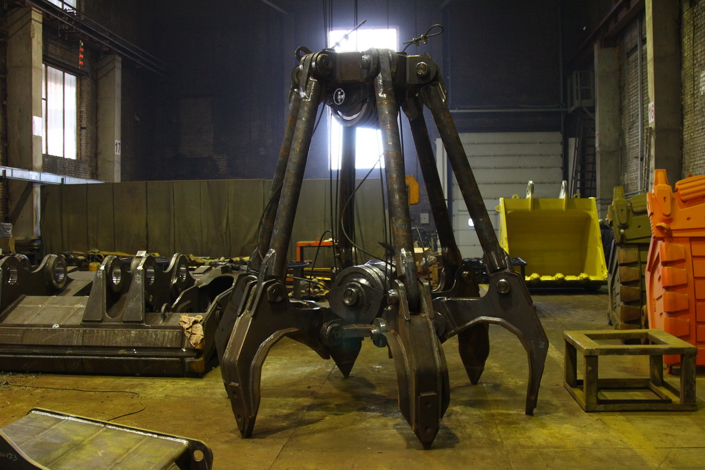 «Профессионал» выпускает такое навесное оборудование, как канатные грейферы. Металлургический холдинг "Северсталь" заказывает грейферы у нас. Мы можем изготовить и поставить двухчелюстные, многочелюстные (одно-, двух-, четырехканатные грейферы).