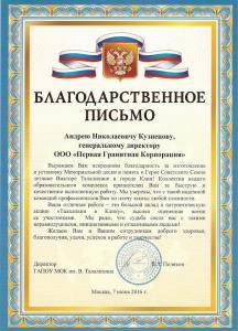 Сотрудники компании разработали дизайн макет со всеми пожеланиями, и через несколько дней мемориальная доска была изготовлена и установлена. Торжественное открытие прошло в конце мая 2016 года, куда были приглашены многочисленные гости из разных ведомств. ООО "ПГК" сотрудничает с множеством организаций как в рамках благотворительной программы, так и по индивидуальному заказу.