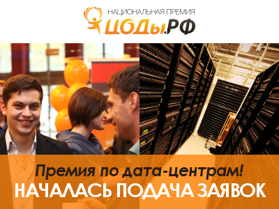 Началась регистрация на участие в первой Национальной Премии ЦОДы.РФ, которая будет вручена участникам конкурса 16 февраля 2017 года. К участию приглашаются профессионалы отрасли: как представители компаний, работающих в сфере ЦОД, так и потребители товаров/услуг данного сегмента рынка!