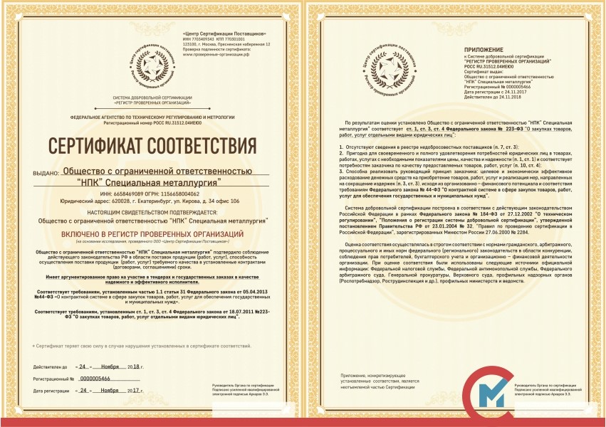 | Учетная запись: | НПК «Специальная металлургия» |