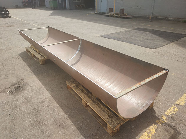 Компания «Веар Сервис» изготовила днище шнека длиной 4 метра, а также защиту днища питателя из стали Hardox твердостью 450 HBW.