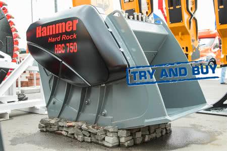 Ковш Hammer HBC не уступает по производительности мини-дробилке, при этом он значительно дешевле в эксплуатации и прост в обращении. При застревании камня в дробильной камере достаточно включить реверс - застрявший кусок выйдет легко и быстро. Таким образом, больше не нужно тратить время, переворачивая дорогостоящее оборудование и стуча им, как кувалдой, снижая ресурс.