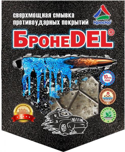 Представляем вам нашу новую сверхмощную смывку «БронеDEL» - предназначенную для быстрого (не более 10 мин.) и эффективного удаления противоударного покрытия Бронекор, а также иных противоударных покрытий, имеющих прочную полиуретановую основу.