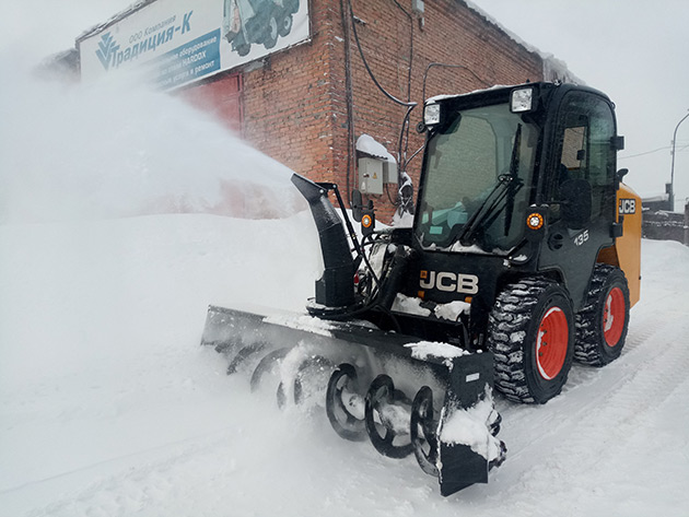 В парке Клиента есть два мини-погрузчика, поэтому для эффективной и главное оперативной уборки снежных завалов, очистки обочин и придомовой территории наш Клиент приобрел шнекороторный снегоуборщик Impulse SR1850, который установлен на мини-погрузчик JCB 135.