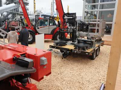 Расширяя линейку машин для горнодобывающей отрасли, компания представила на выставке новый телескопический погрузчик MHT 12330. При высоте подъема 12 м грузоподъемность модели варьируется от 33 т с вилами до 36 т с крюком. Машина получила новые платформу и каретку с вилами шириной 2,9 м. В стандартной комплектации кабина и стрела погрузчика оборудованы дополнительными фонарями с защитными решетками.