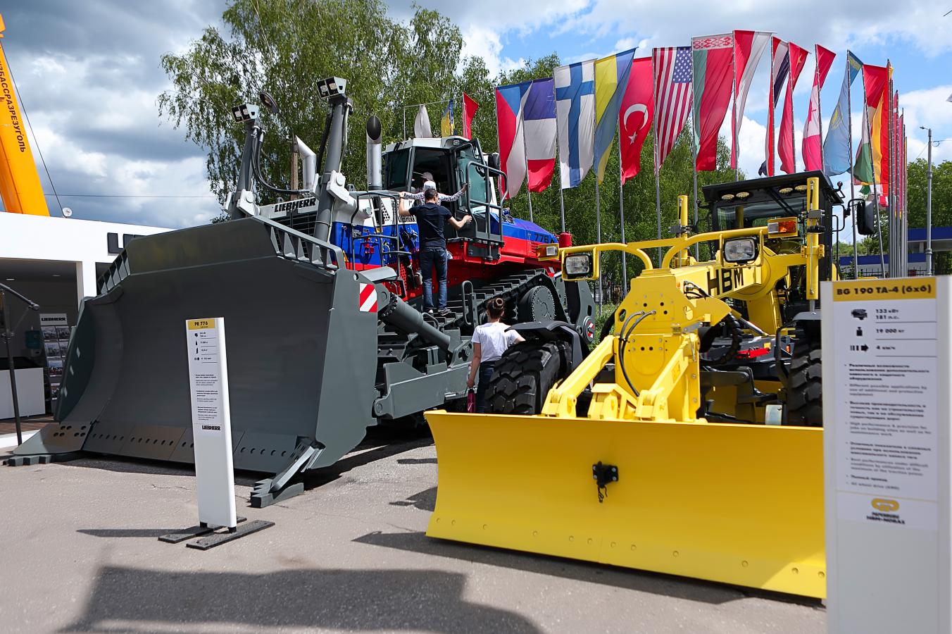 В числе экспонатов – гусеничный карьерный бульдозер Liebherr PR 776, мобильный кран Liebherr LTM 1100-5.2 и автогрейдер Nobas 190, представляемый в рамках стратегического партнерства с компанией Nobas. В интерактивном формате на стенде С можно было ознакомиться с новейшей моделью горного экскаватора Liebherr R 9100 B. Гусеничный бульдозер Liebherr PR 776