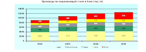 Индия производит нержавеющей стали в 14 раз больше, чем Россия! Учитывая себестоимость производства, Индия сегодня может продавать нержавейку по самым низким ценам в мире, что она и делает. Прирост объемов производства c 2002 года составил 40%.