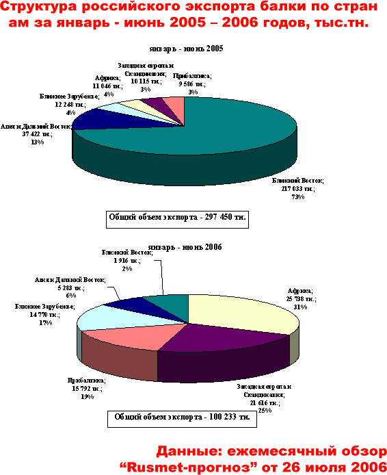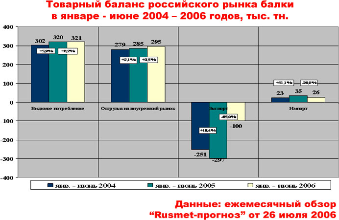 На протяжении всего 1 полугодия 2006 г. на российском рынке наблюдается тенденция к трехкратному сокращению общего объёма экспорта балки относительно прошлого года. Столь сильное сокращение экспорта связано, главным образом, с мощнейшим вытеснением ЕвразХолдинга с рынков Ближнего Востока, Азии и Дальнего Востока, преимущественно китайскими производителями. При этом, почти двукратное увеличение поставок на другие мировые рынки не смогло компенсировать столь значительного сокращения экспорта.