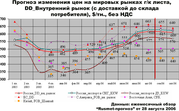 Листовой холоднокатаный прокат. На данный момент после некоторого снижения цен производителями на сентябрь месяц наблюдается период стабильности цен как у трейдеров, так и у производителей. Снижение темпов спроса на холоднокатаный прокат было зафиксировано уже в середине августа, что вкупе с резко упавшими поставками на внешнем рынке и спровоцировало снижение цен на сентябрь у производителей, а также на трейдерских площадках. На данный момент основные операторы рынка стараются поддерживать стабильные цены, в редких случаях оперируя скидками. В целом рынок находится в ожидании возможного дальнейшего падения спроса, однако на прошедшей неделе цены не претерпели существенных изменений и разброс цен по рынку невелик.