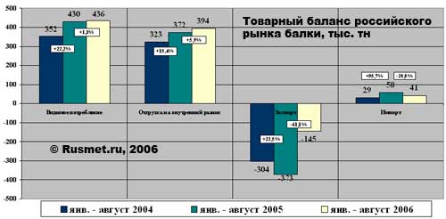 Вторая причина станет нам понятна из рассмотрения динамики товарного баланса российского рынка балки за 8 месяцев 2004-2006 гг.