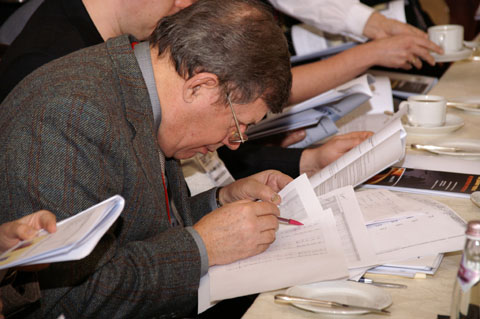 Непосредственно за завтраком (меню прилагается), каждый участник имел возможность детально ознакомится с аналитическими материалами, в которых рассматривались процессы, происходящие на мировом и российском рынке нержавеющей стали (Rusmet Stainless World), конкуренции и основным процессам, происходящим в черной и цветной металлургии (Конкуренты на рынке черных и цветных металлов). Также, каждый участник ознакомился с предварительной программой работы «Совета», которая задавала определенные рамки дискуссии. Каждая дискуссия сопровождалась интерактивным голосованием в режиме реального времени, что позволяло всем наблюдать срез общего мнения участников и, соответственно, корректировать или отстаивать собственную позицию. Корреляция вопросов в интерактивном режиме позволяла проводить сравнение результатов голосования на Совете с результатами, полученными путем предварительно проведенного опроса в сети Интернет. Выяснение причин совпадения или существенного расхождения мнений также представляло значительный интерес.