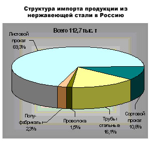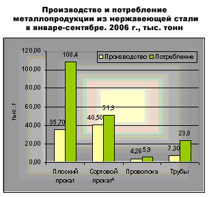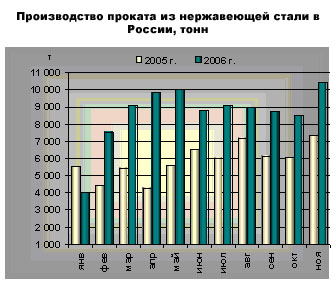 Ситуация на российском рынке нержавеющей стали во многом определяется ростомуровня спроса на нержавеющую сталь при недостаточном его предложении со стороныотечественных производителей. В России традиционно сохраняется достаточновысокий уровень спроса на прокат из нержавеющих сталей, который в основномудовлетворяется за счет импортной продукции. Потребление продукции изнержавеющей стали (плоский прокат, сортовой прокат) по итогамянваря-сентября