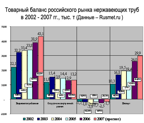 С 2002 по 2006 год объем российского рынка труб из нержавеющей стали увеличился, по оценке RUSMET, на 76% и достиг объёма 38,9 тыс. тонн.