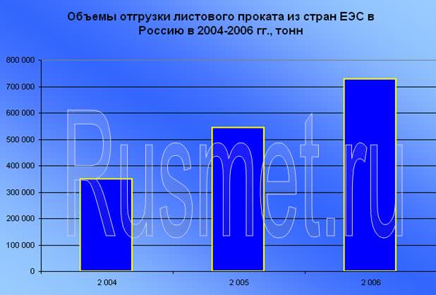 Рост импорта листового проката в Россию по итогам 2006 года практически на четверть отчасти стал результатом активной деятельности европейских производителей плоского проката на российском металлургическом рынке. На фоне снижения экспорта стального листа, российский рынок в 2006 году продолжал насыщаться прокатом зарубежного производства.
