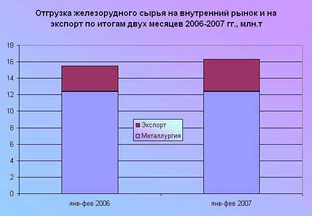 Безусловно, в некоторой степени выросло потребление сырьевых продуктов на обогатительных фабриках, однако наиболее интенсивно вырос экспорт. Его увеличение составило порядка 25%. В различных неметаллургических отраслях потребление железорудного сырья заметно выросло, однако этой динамикой в силу незначительности можно пренебречь. Таким образом, пока можно констатировать, что развитие добывающих отраслей идет по экспортному пути.