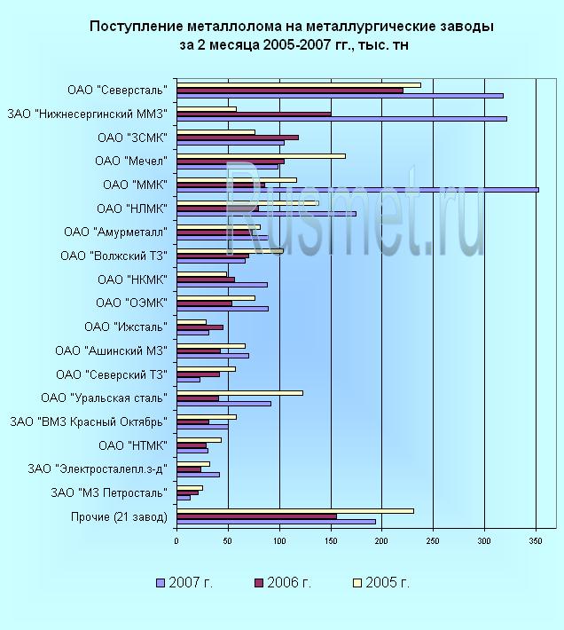 Самые масштабные объемы потребления отмечены на ОАО «ММК». Вместе с тем Магнитогорский комбинат продемонстрировал и самые высокие темпы прироста спроса: по сравнению с периодом январь-февраль прошлого года поставки лома на комбинат возросли более чем в 4 раза.