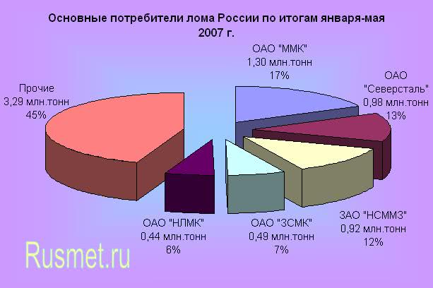 На второе место по объемам потребления в стране вышла Северсталь (почти 1 млн.т лома за 5 месяцев с начала года), даже несмотря на спад поставок по сравнению с прошлогодним уровнем (-4%).