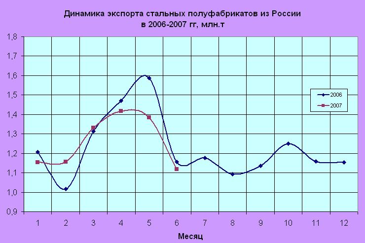 Таким образом, за первое полугодие текущего года российскими производителями было экспортировано порядка 7,6 млн.т стальной заготовки и прочих полуфабрикатов. Этот результат ниже прошлогоднего уровня за аналогичный период времени на 3%.