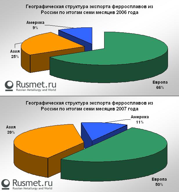 /© Rusmet.ru, Марк Сергеев/ Вот уже третий год продолжается сокращение отгрузки российских ферросплавов на Европейский рынок. Суммарный экспорт по итогам прошлого года составил всего около 0,7 млн.т, из них свыше 0,4 млн.т было отгружено потребителям стран ЕЭС (что соответствует спаду в 22%). По итогам же текущего года темпы сокращения отгрузки российских ферросплавов европейским потребителям составляют порядка 28%. Доля Европы в структуре поставок ферросплавного сырья из России снизилась, таким образом, с 66% в прошлом году до 50% в году текущем.