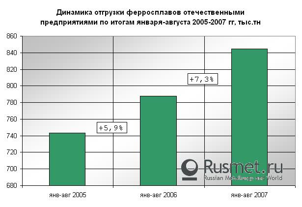 Отчасти такая ситуация с экспортом обусловлена растущим внутренним потреблением. Рост потенциала отечественных ферросплавных предприятий реализуется сейчас в первую очередь на внутреннем рынке. По итогам января-августа отгрузка отечественных предприятий составила порядка 0,84 млн.т, что выше прошлогоднего уровня на 7-8% (лидерами роста в отрасли являются ОАО «Кузнецкие ферросплавы», Серовский и Братский ферросплавные заводы).