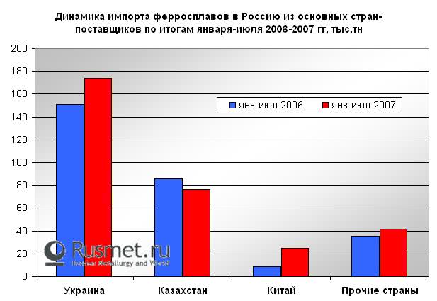 Еще одним интересным трендом российского ферросплавного рынка является интенсивно растущий приток в страну зарубежной продукции. Если по итогам прошлого года импорт ферросплавов отечественными предприятиями вырос всего на 3-4%, то по итогам семи месяцев текущего года показатели прироста оцениваются цифрами в 12-14%. Порядка 55% от ввозимой продукции поступает из Украины, которая, после прошлогоднего спада, вновь наращивает поставки. Интенсивнее всего наращивает присутствие на российском рынке Китай (как, впрочем, и на рынках другой продукции). За январь-июль продажи китайских ферросплавов в России в абсолютных величинах выросли более чем в 2,7 раза.
