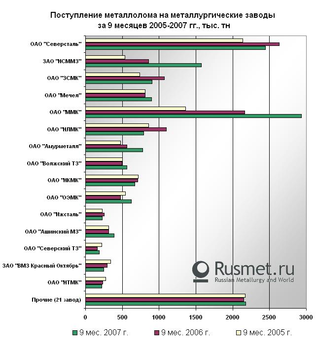 Тем не менее,спада не произошло. В числе основных тому причин – активизация ценовой конкуренции со стороны уральских металлургов. Фактически, очередной импульс росту цен на лом на российском рынке придал ММК. Установив высокий ценник для Центрального региона, Магнитка весьма уверенно вмешалась в ситуацию в регионе,оттянув на себя ощутимые потоки лома. Еще одним шагом стало сентябрьское повышение цен ММК для ближних регионов, что привело к обострению ценовойситуации и на Урале. Повышения последовали также от Уральской Стали, Ижстали,ЗМЗ. Борьба за лом продолжилась. Адекватным ответом на действия Магнитки стали изменения закупочных цен и других потребителей лома, ведь в условиях подходящего к концу сезона формирования запаса на зиму, планы поставок у многих из них оказались далеки от стопроцентного выполнения.