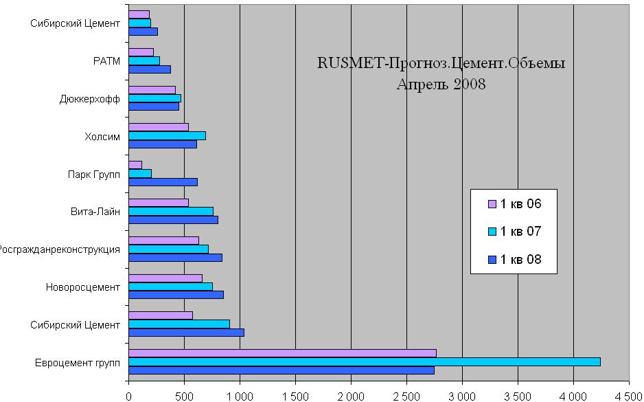 Среди российских холдингов наиболее существенный спад по сравнению с прошлогодними результатами продемонстрировал крупнейший игрок Евроцементгрупп. Снижение поставок составило порядка 35%. Менее крупные холдинги, входящие в пятерку крупнейших участников рынка, в большинстве своем превысили уровень первого квартала прошлого года, однако увеличение было достаточно плавным.