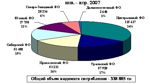 Видимое потребление швеллера в ЮФО в январе-апреле 2008 г. возросло более чем на 42% относительно аналогичного периода 2007 г., тогда как прирост по России составил менее 20%.
