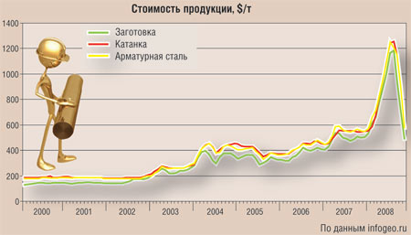 С 2000 года по июль 2008-го цены на металлургическую продукцию выросли в 6 раз. За последние три месяца они обвалились вдвое.