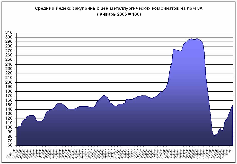 Цены на лом черных металлов с начала января выросли всреднем на 25 – 30%. Даже в отсутствие сегодня давления экспорта, эта тенденция имеет склонность к продолжению. Для стимулирования стабильного сырьевого потока в сторону комбинатов должны быть соблюдены два ведущих фактора: стабильная цена на уровне 8000 – 9000 тыс. руб.за тонну и стабильно работающая система оплаты поставок. Без этого рынок будет следовать «лихорадочным»тенденциям взлетов и падений.