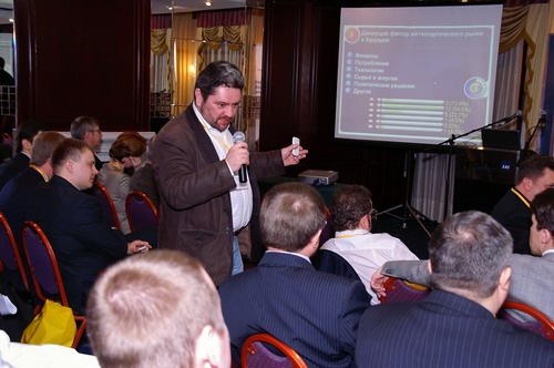 После обеда участники конференции приступили к третьей, заключительной, сессии "Выработка практических рекомендаций металлургов и производителей оборудования (повышение производительности труда, эффективности управления проектами, повышение конкурентноспособности предприятий)". Эта сессия стала самой продолжительной и самой "технологичной" и, не побоюсь сказать, увлекательной с точки зрения инженерного искусства, "изящества", "добротности", и экономического эффекта предложенных решений.