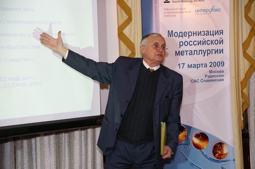 Директор Института экономики черной металлургии ФГУП "ЦНИИчермет им. Бардина", д.э.н., проф. Владимир Штанский в своём выступлении назвал главной причиной невостребованности созданного потенциала российской металлургии наблюдаемое снижение ёмкости внутреннего рынка металлопотребления. За последние годы компаниями, разумно использовавшими имеющиеся у них средства,создан значительный инновационый потенциал: сортовой комплекс ОАО «ММК», три линии по производству оцинкованного листа, три линии по производству листа с полимерными покрытиями, два современных агрегата по производству ТБД, ряд МНЛЗ и современных средств обработки стали, толстолистовой стан 5000 в ОАО «Северсталь». За четыре года (2004-2007) основные фонды металлургических предприятий практически удвоились с 341 млн. руб. (12 млрд. долл.) до 660 млрд. руб. (23,5 млрд. долл.).