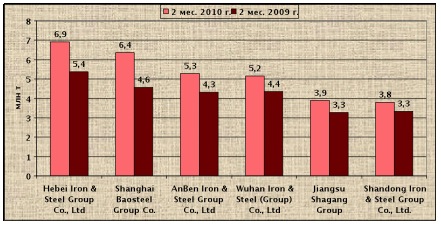 /Rusmet.ru/ В феврале 2010 г. выплавка чугуна в Китае увеличилась по сравнению с февралем 2009 г. на 17,21 % (или на 6,97 млн т) до 47,5 млн т. Однако по сравнению с январем текущего года было отмечено снижение на 4,5 %, что было связано в меньшим количеством дней в феврале. Среднесуточная выплавка чугуна в феврале составили 1,696 млн т, что на 92 тыс. т больше уровня января текущего года (1,604 млн т).По итогам января-февраля 2010 г. производство чугуна в стране составило 97,23 млн т, увеличившись по сравнению с аналогичным периодом 2009 г. на 22,3 % (или на 17,73 млн т).Крупнейшими производителями чугуна в стране являются Hebei Iron & Steel Group Co., Shanghai Baosteel Group Co., AnBen Iron & Steel Group Co., Wuhan Iron & Steel (Group) Co., на которые приходится 24,4 % от общего производства чугуна в стране.Из крупнейших производителей наиболее значительно увеличилась выплавка чугуна на предприятиях, входящих в Shanghai Baosteel Group Co. (на 39,6 %).