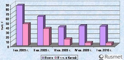 По итогам I квартала 2010 года экспорт лома нержавеющей стали из Японии снизился, в основном, за счет уменьшения поставок в Китай.