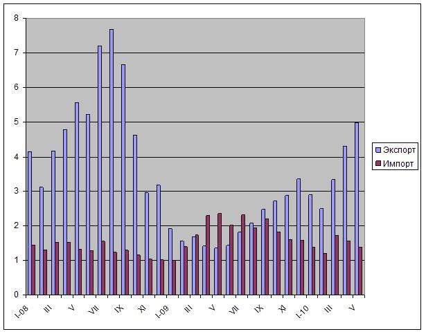 Экспорт и импорт стали в Китае в 2008-2010 годах, млн. т