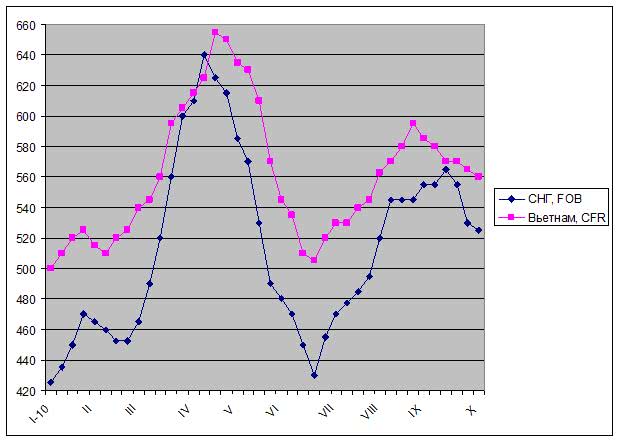 Крайнюю пассивность проявляет и восточноазиатский рынок. Вьетнамские компании, активно приобретавшие полуфабрикаты в конце августа, к октябрю полностью потеряли интерес к новым закупкам. Спрос на длинномерный прокат в стране, как и на Ближнем Востоке, оказался меньше ожидаемого, так что имеющихся запасов заготовок хватит, по меньшей мере, до ноября. Российские поставщики предлагают полуфабрикаты по $555-565 за т CFR, цены на продукцию из Японии, Тайваня и Малайзии могут достигать $575 за т CFR, но эти котировки, по большей части, имеют виртуальный характер. При этом, схожие процессы наблюдаются и в других странах Юго-Восточной Азии. Очевидно, в ближайшее время спрос на заготовки во всем регионе будет минимальным.