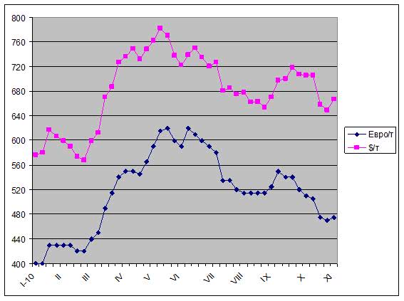 Среди поставщиков дешевых горячекатаных рулонов Eurofer выделяет, прежде всего, украинские и китайские компании, чья продукция стоит порой на 25% ниже, чем у европейских производителей. Впрочем, эта информация явно устарела. Она относится к сентябрю, когда европейские металлургические компании несмотря на высокий курс евро по отношению к доллару стремились к подъему внутренних цен на плоский прокат в четвертом квартале. Тогда разница в цене на украинский и, скажем, германский горячий прокат могла достигать $100-120 за т.